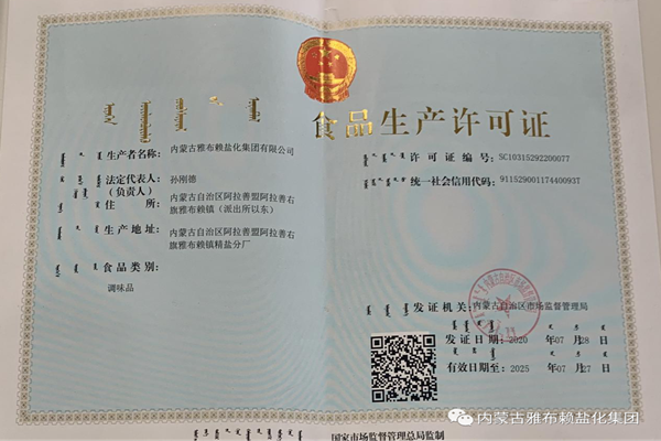 近日,开云体育-开云-开云官方网站 顺利通过食品生产许可现场核查并取得由内蒙古自治区市场监督管理局颁发的食品生产许可证。