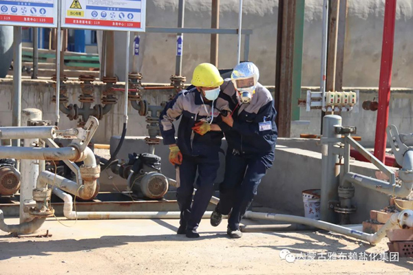 根据阿右旗应急管理局、市场监督管理局及集团公司安委会关于2022年“安全生产月”活动的安排,集团公司安全生产委员会组织各生产分厂、子公司开展了现场应急实战演练活动。 6月21日上午,采盐分厂在湖下再生盐2班生产现场开展一起因皮带机托辊脱落,导致操作人员受伤的现场应急处置实战演练活动。